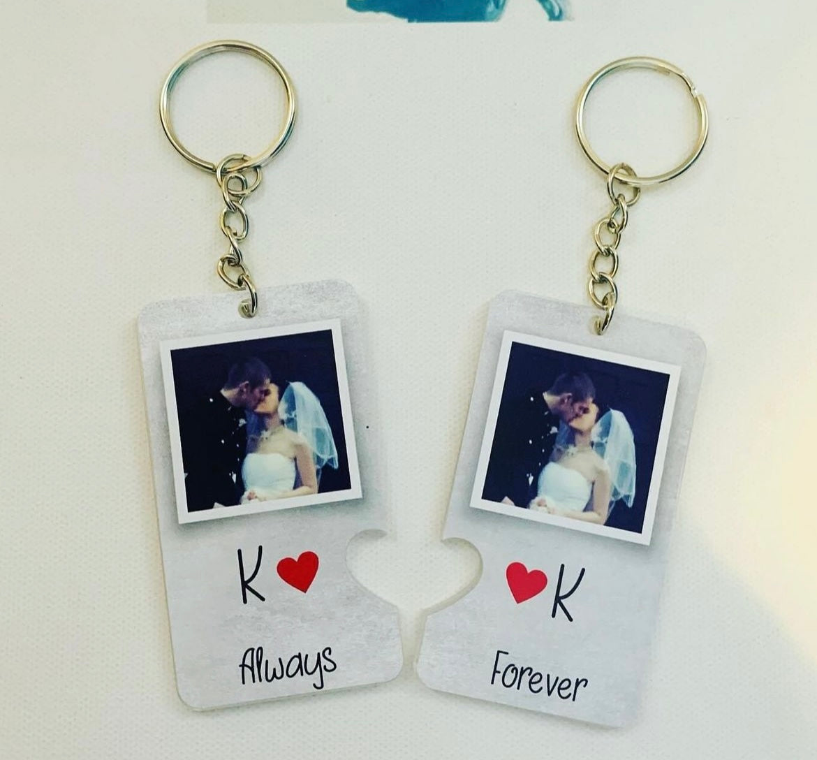 Cherish Special Moments with Our Cute Photo Personalised Initials Joined Keyrings!