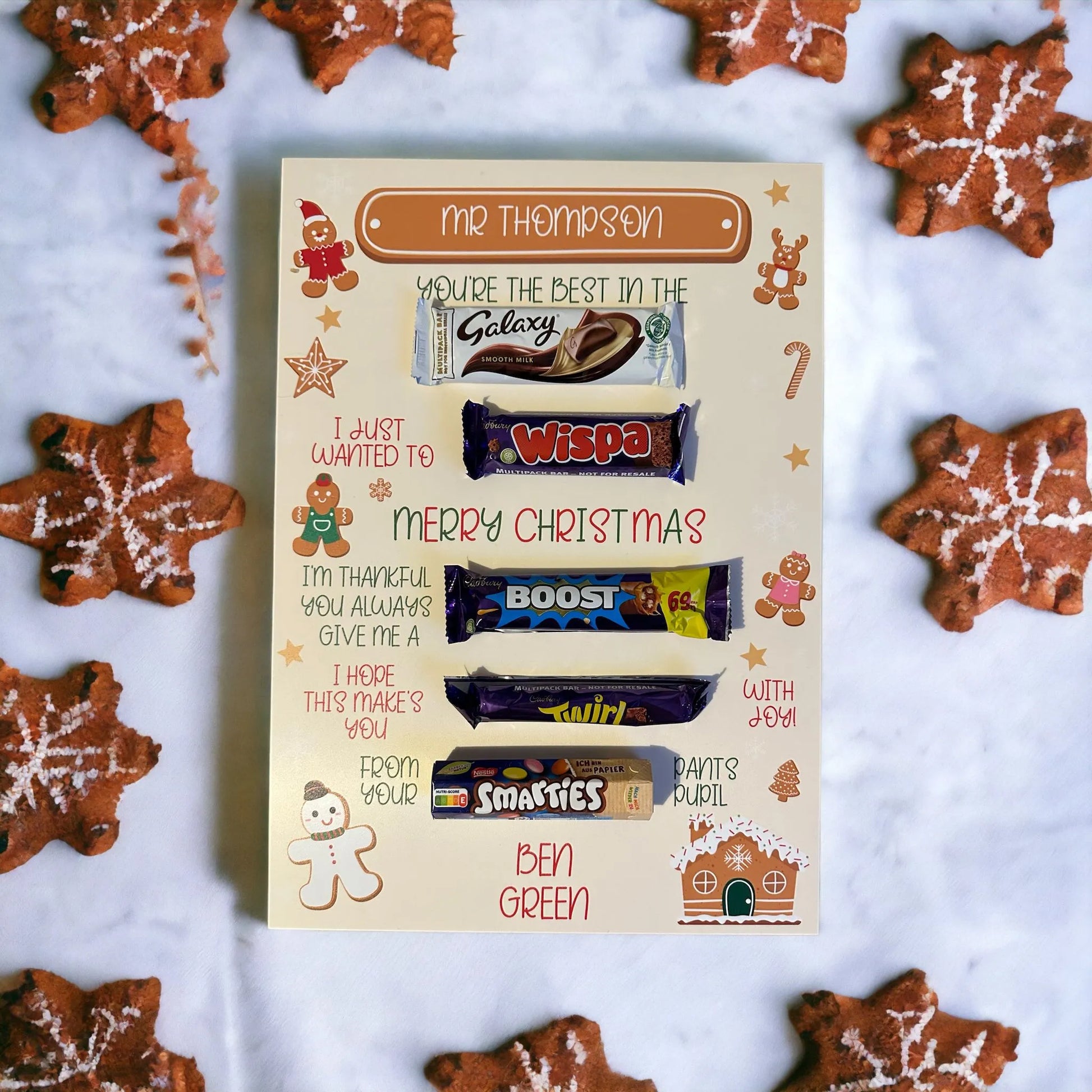 Express your thanks in the sweetest way possible—order your A3 Teacher Chocolate Board with Cute Gingerbread Illustrations today and make your teacher’s holiday season extra special!