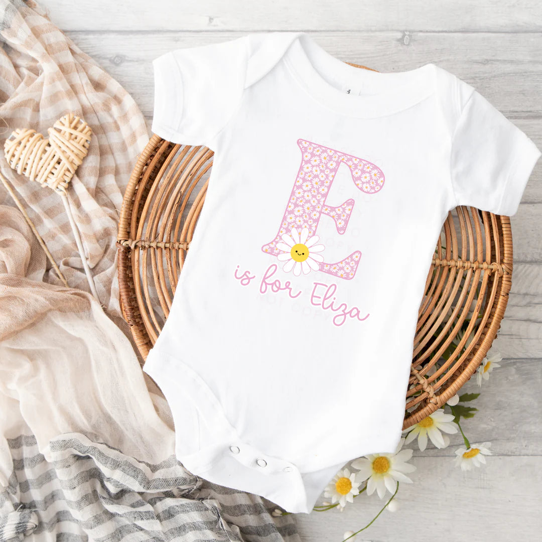 Brighten up any day with our Daisy Alphabet Vest, available in cheerful blue or pink! This charming design features a cute daisy pattern along with a personalised name, making it a perfect addition to your little one’s wardrobe. Whether for a special occasion or everyday wear, this vest is sure to stand out. If you’d prefer this design on another item, just message us – we’re happy to customise it to suit your needs!