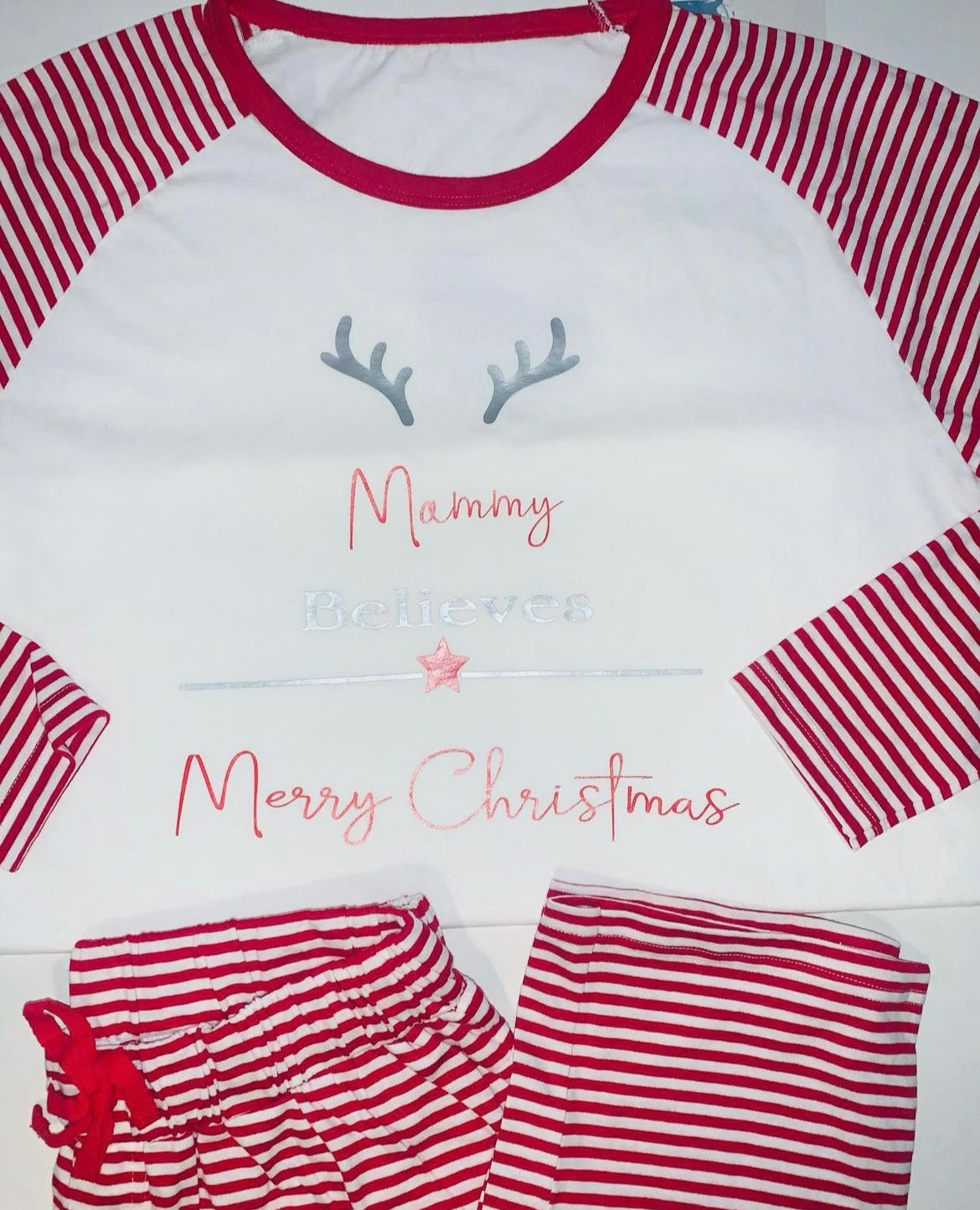 Bring your family together this holiday season with our Family Matching Striped Christmas PJs, personalised with "Name Believes"! These cosy and festive pajamas are perfect for creating magical Christmas memories, ensuring everyone in the family feels the joy and wonder of the season.