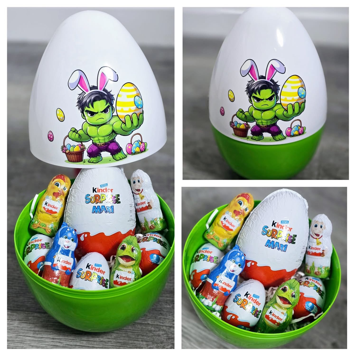 Give the gift of surprise and delight this Easter with a large, personalised Easter egg that combines the joy of chocolate with the fun of Kinder Surprises. The perfect treat for Easter baskets, parties, or just as a sweet, thoughtful gift.