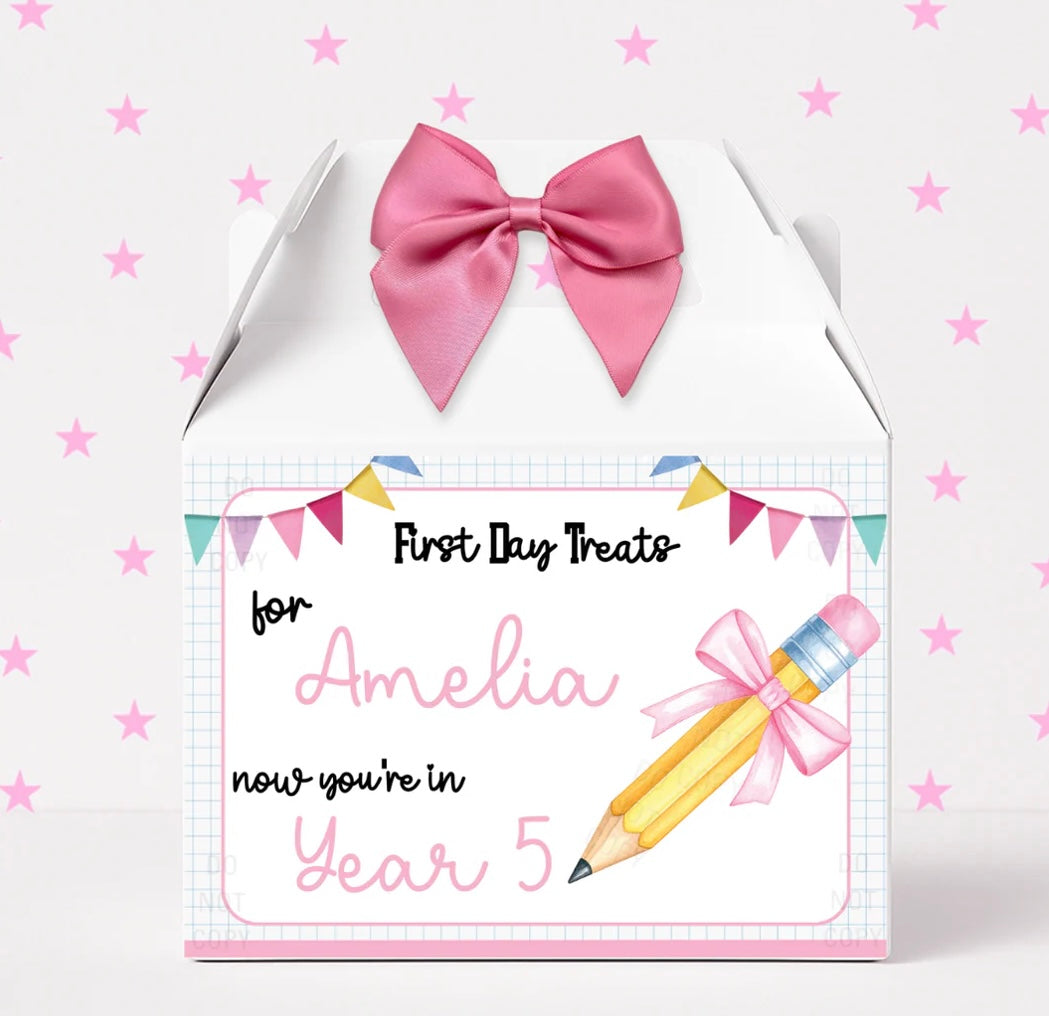 Make their first day extra special with this charming First Day treat box. Designed for you to fill with your own goodies, it's perfect for adding snacks, small gifts, or little notes of encouragement. A thoughtful way to start their school journey with excitement and love.