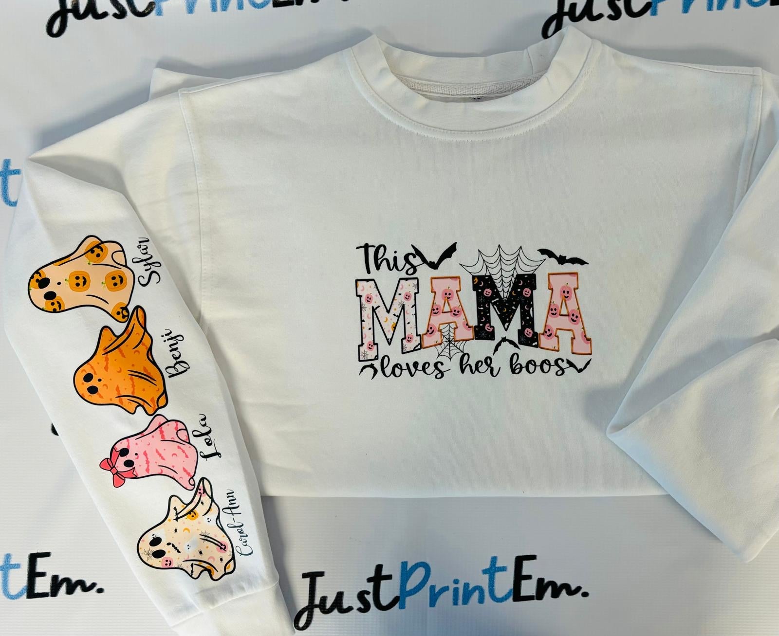 Make this Halloween extra special—order your personalised "This Mama Loves Her Boos" Halloween Jumper today and celebrate your family in fun, festive style!