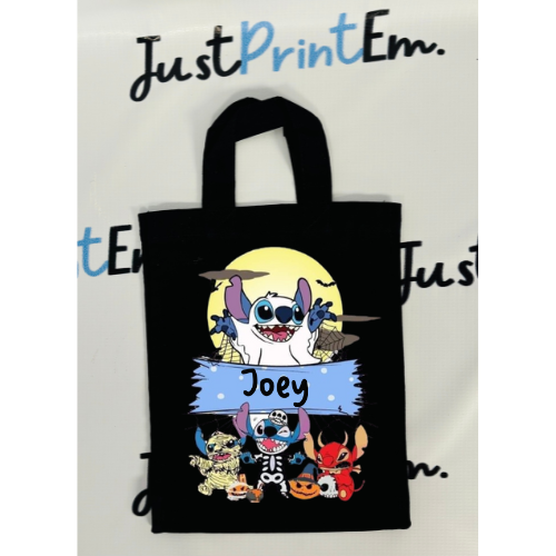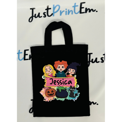 Add your child's name to the bag, making it uniquely theirs and easy to spot among other trick-or-treaters. The Black bag features a fun Halloween-themed picture, perfect for capturing the spooky spirit of the holiday. Made from sturdy, long-lasting materials that can handle even the biggest candy hauls. Mini size provides plenty of room for all the treats your child can gather, with a comfortable handle for easy carrying. Ideal for trick-or-treating, Halloween parties, or even as a festive gift bag.