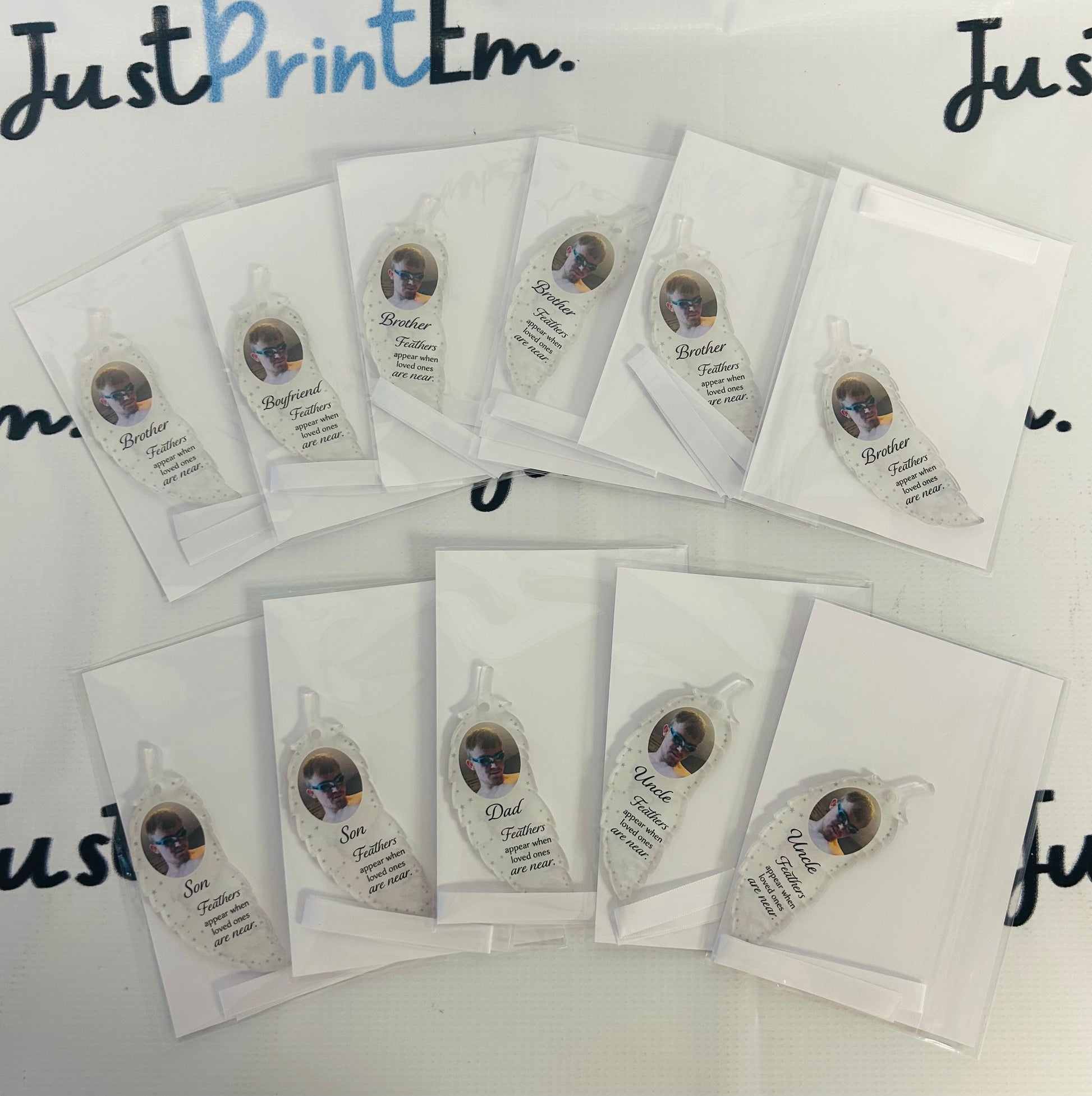 Our Memorial Hanging Feather is a touching keepsake to honor the memory of someone special. Beautifully designed with a delicate feather, it can be personalised with a loved one’s name and photo, creating a meaningful reminder of their presence.