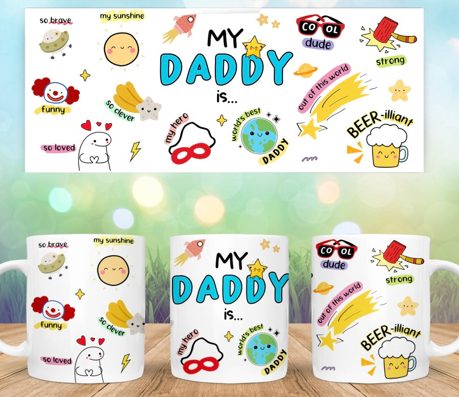 Our My Daddy Mug is filled with love, laughter, and the cutest little illustrations and sayings that celebrate everything amazing about Dad. From funny doodles to heartfelt quotes, it’s the perfect gift to remind him just how special he is — one sip at a time. Ideal for Father’s Day, birthdays, or just because!
